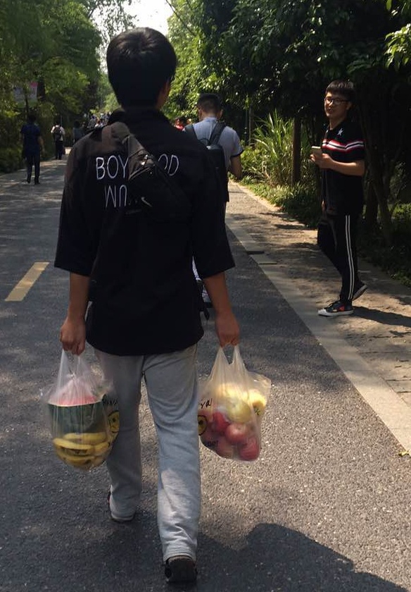 看我们的水果,香蕉、苹果、西瓜,尤其是苹果,每一个都是我仔细认真挑选的呢,保证个大味甜