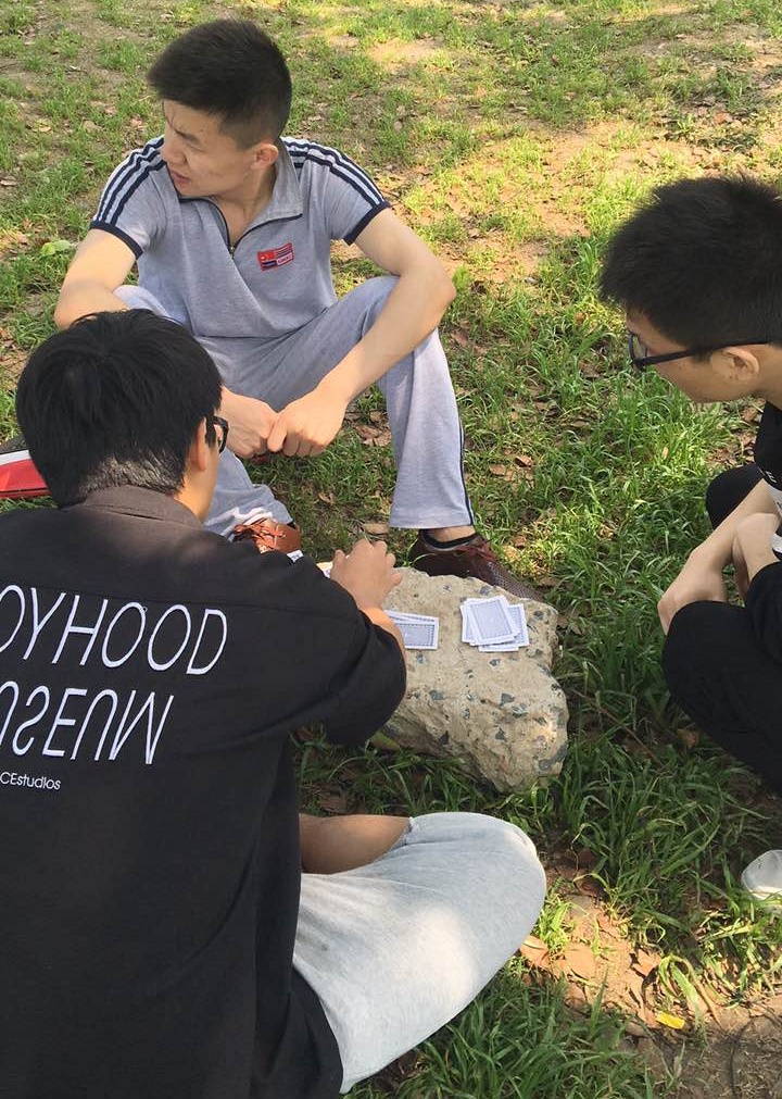 到达目的地,选了一块草坪,开始吃吃吃,玩玩玩啦!首先,给大家看三个人的斗地主(某人因为太激动,跳起来的时候由于体重达到300斤,把旁边的西瓜给踩扁了,心疼西瓜5分钟