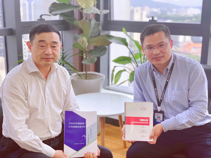 最后王主任赠送其主编的 《梅园论剑》、《开园有道》两本书给谢总。谢总回赠了皇冠体育网址人力研究院编制的《2020中国医药人力发展白皮书》。