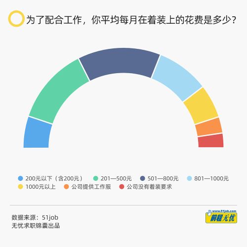 着装:半数人为了工作每月置装花费500元以上
