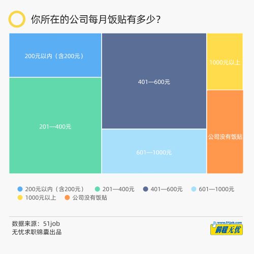 前程无忧的调查显示,90%以上的企业提供餐食和福利。401-600元的人粘饭比例最高,达到30.5%。27.1%的受访者每月享受201-400元的餐补。14.3%的受访者发帖为601-1000元。另外,最让人羡慕的是米贴在1000元以上的受访者,占比6.3%。让人不禁怀疑,你们公司还招人吗?
