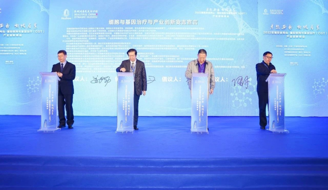 11月26日,2022首届安吉两山·国际细胞与基因治疗(CGT)产业创新峰会举行。开幕式上,参加活动的院士共同发出《细胞与基因治疗产业创新安吉宣言》:“我们希望并期待有更多的科学精英加入到细胞与基因治疗科研队伍中来……在安吉这个美丽的地方,发展先进的生命健康产业具有得天独厚的优势,欢迎细胞与基因治疗的同行们有更多机会,到安吉进行全方位的交流与发展。”