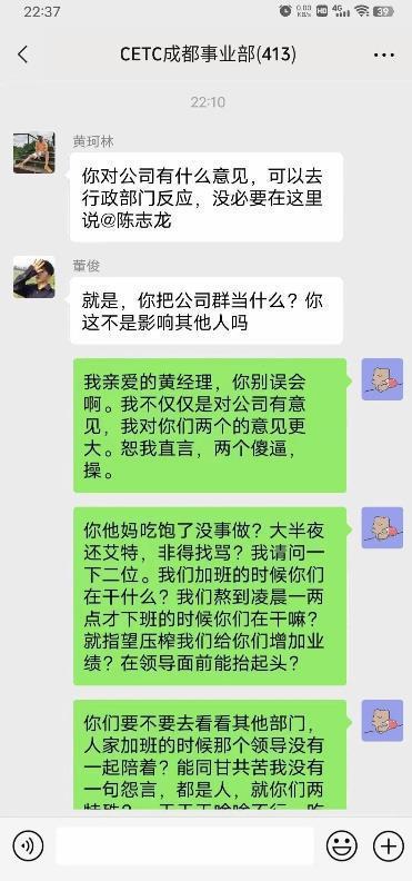 4月4日,疑似“中国电科清明节强制加班怒怼领导”的相关聊天记录在网络上流传。