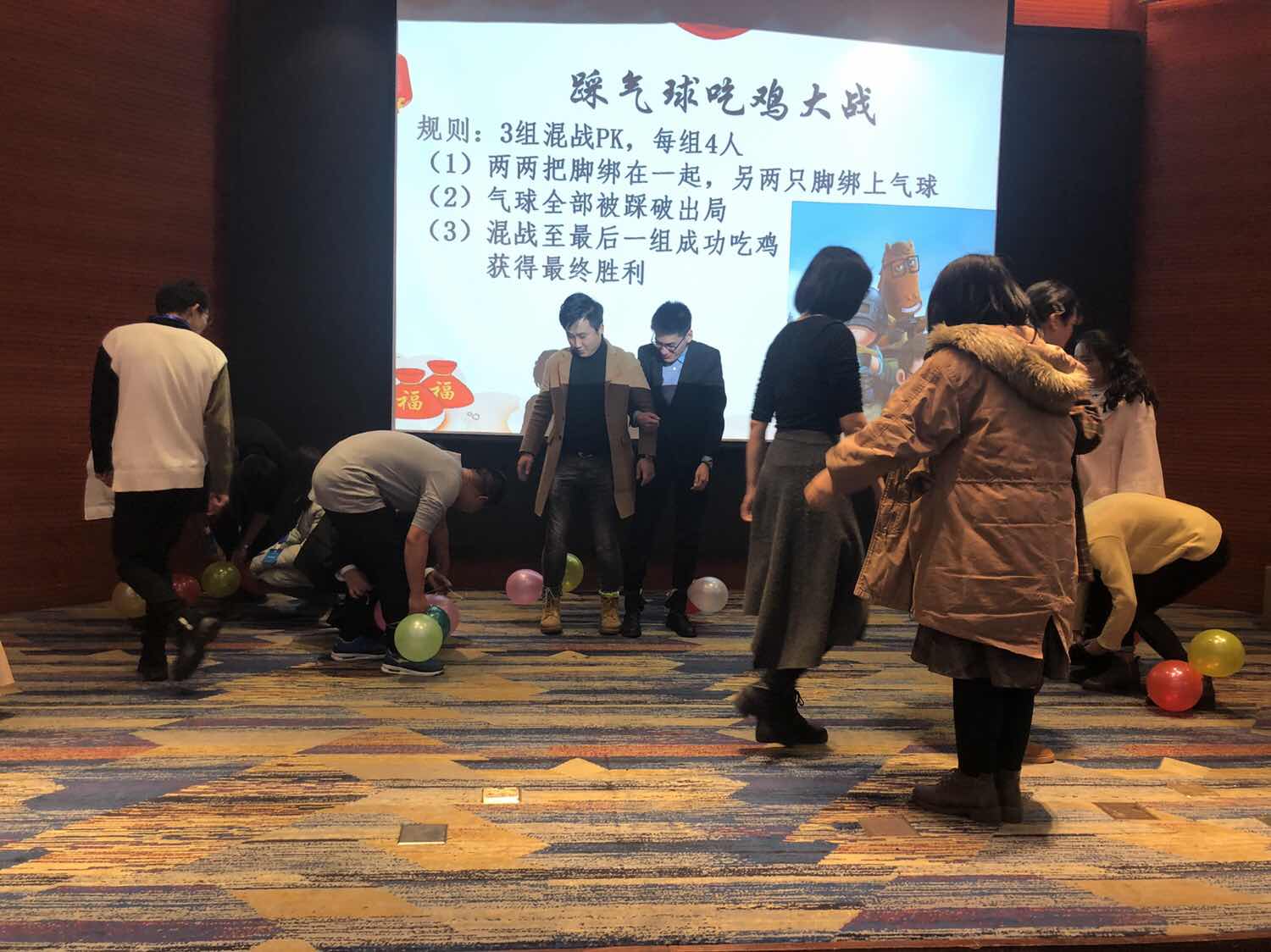 场面一度失控的踩气球吃鸡大战。