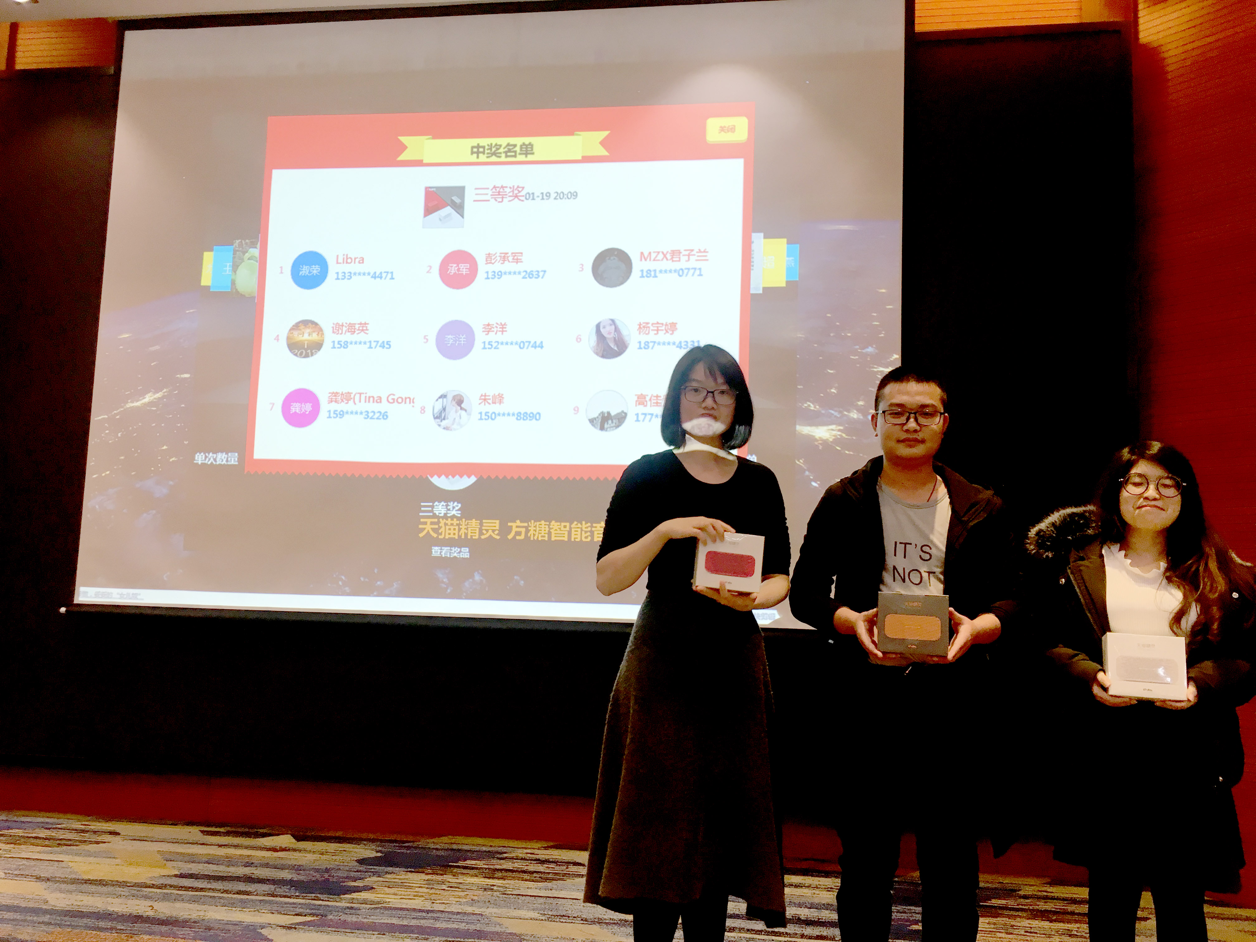 游戏之后,进行了更加激动人心的幸运大抽奖。公司为大家准备了ipad、动感单车、面包机、智能音箱等等丰厚的奖品。而从小和中奖绝缘的小编我竟然……一如既往的没有中奖!