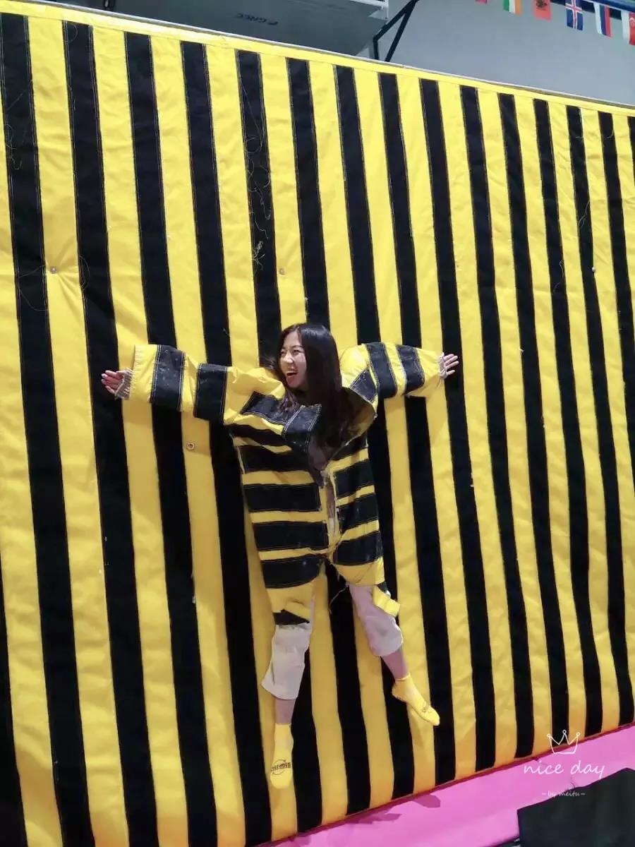 蹦床也是相当考验体力的活动,最后终于有位小姐姐成功把自己粘上去了!