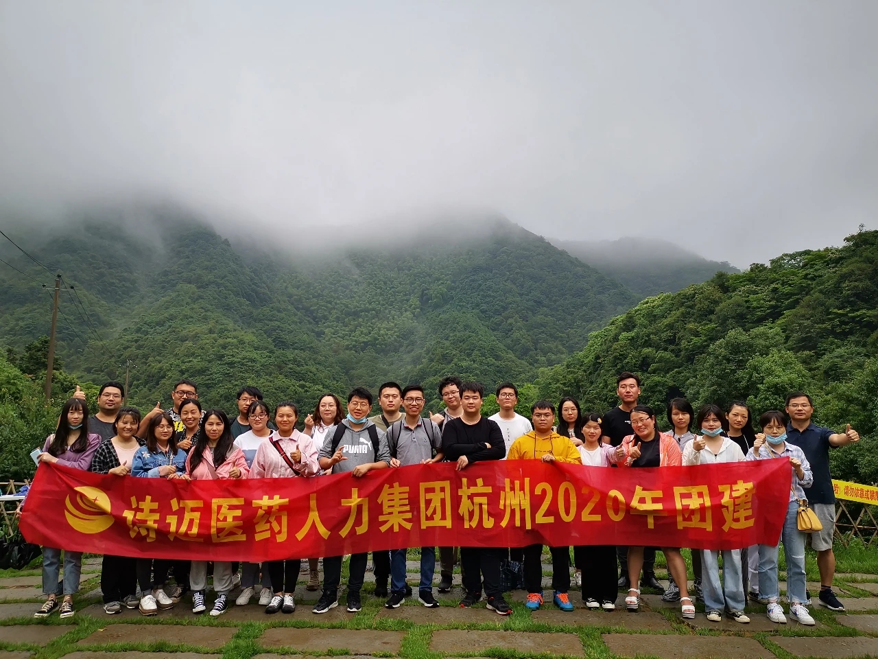 大家聚在一起为这次团建留下纪念
