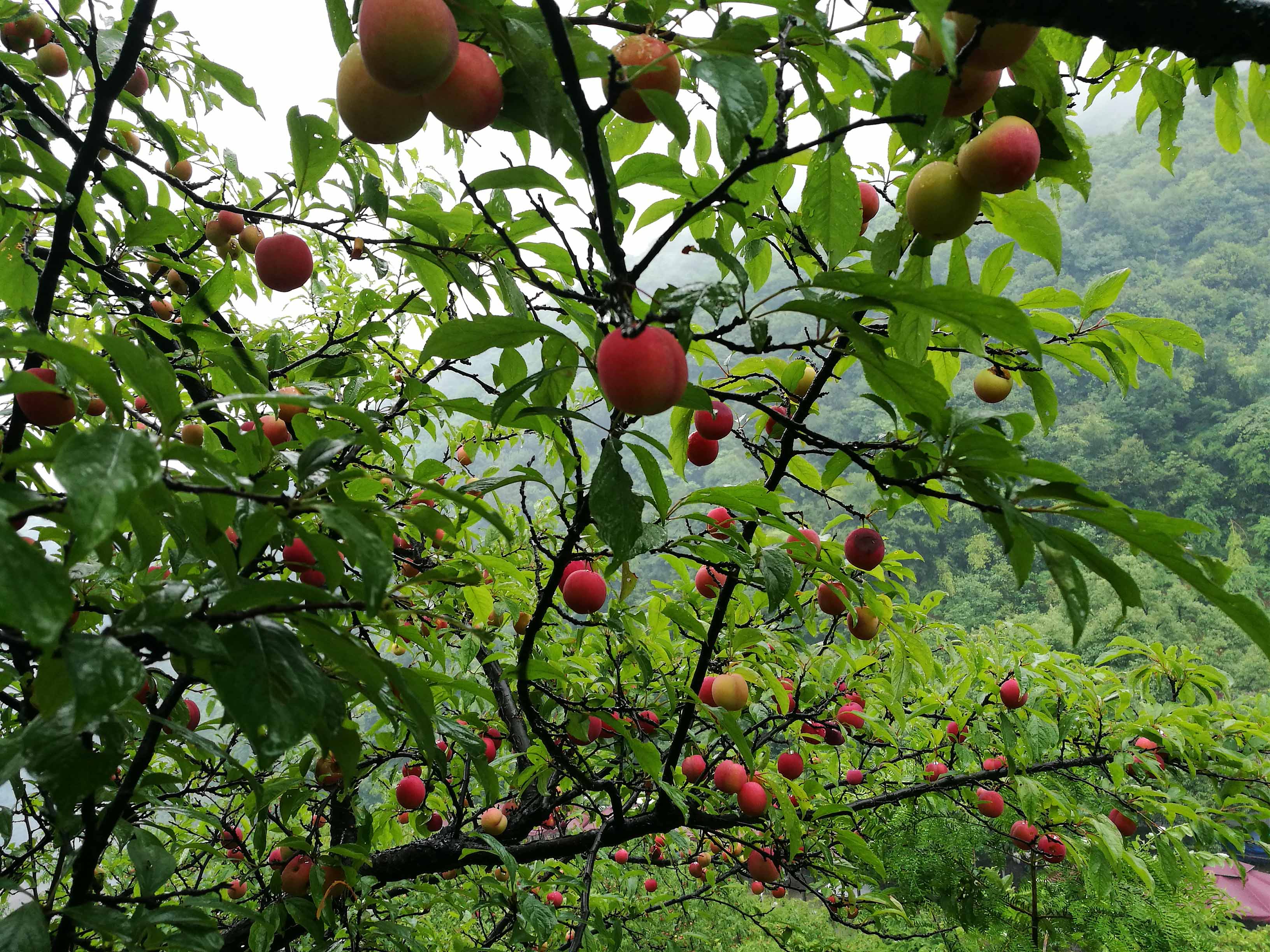 纷纷爬到山上摘李子